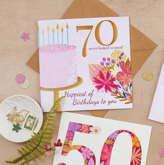 70th Floral Birthday Card